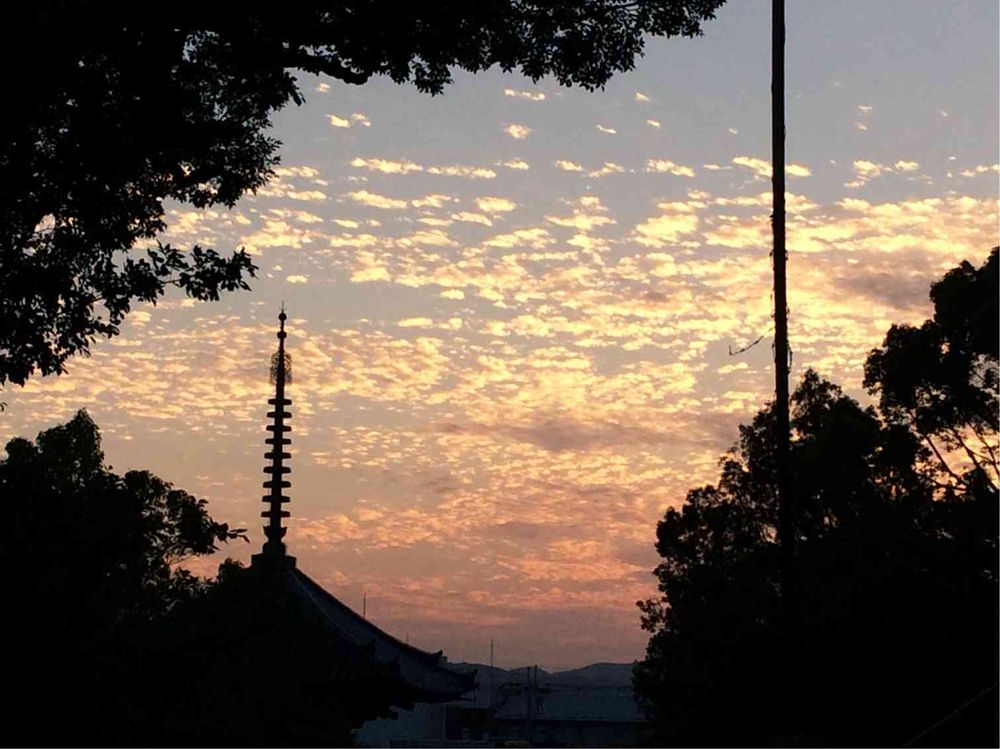 興福寺の五重塔の見える売店の横から見える夕焼けなんです❣️(*´∀`*)