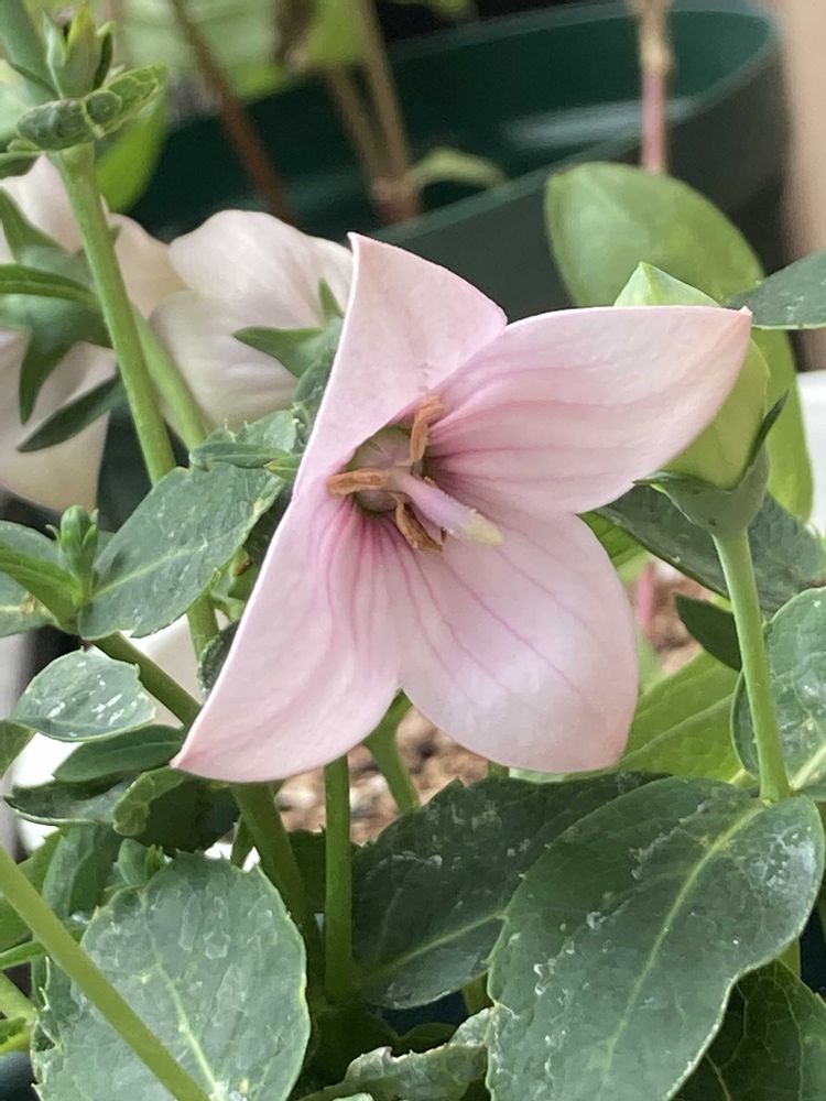 さん、花友さんから5粒の種を貰い育ててますが三本発芽して一本は虫に食べられ他の一本は小さいけど咲いています