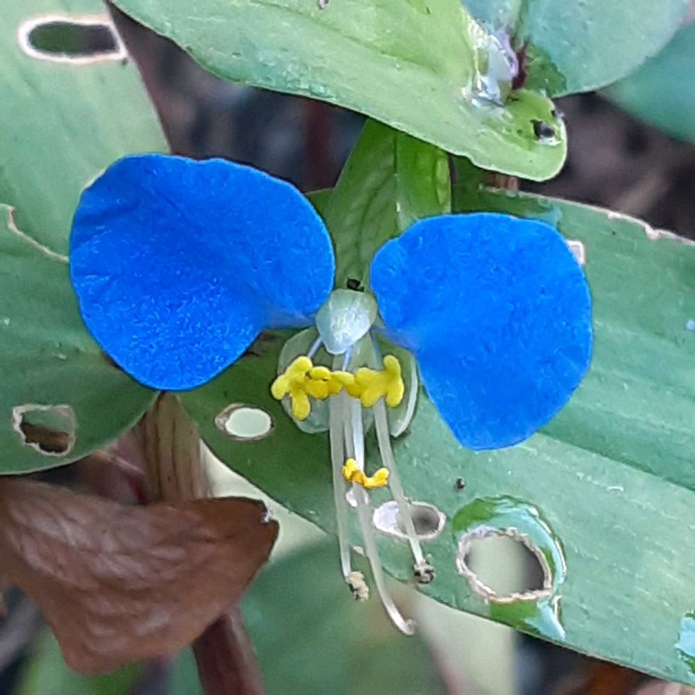 たった今、撮ってきた庭に咲くツユクサ💙