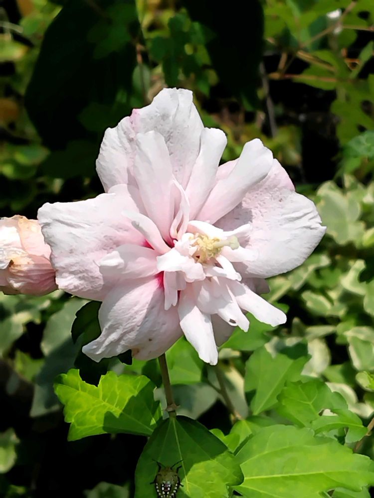 挿し木のムクゲ 八重と一緒にゆっくり咲いてます🌸