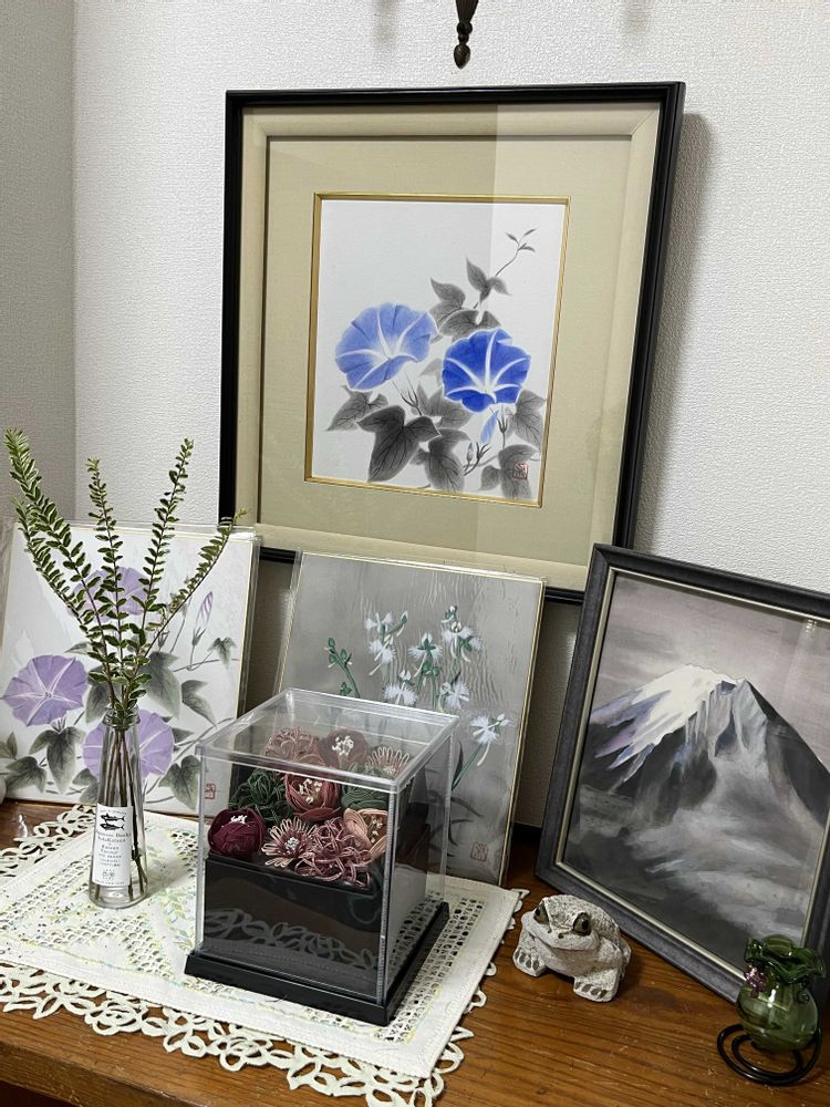 暑い日はお家の中でお祖母様の絵でお花の鑑賞会がいいね👍