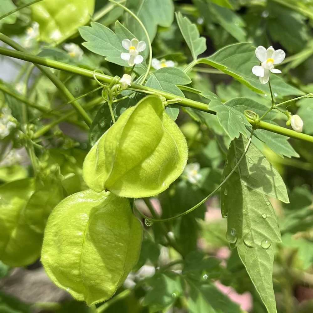種まきから育てたので、小さなお花や緑色のフウセンのような実も素敵で沢山出来ています💚可愛い💚