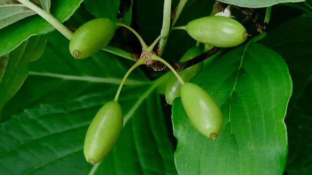 春に目を楽しませてくれた「サンシュユ」に実が付いていました。