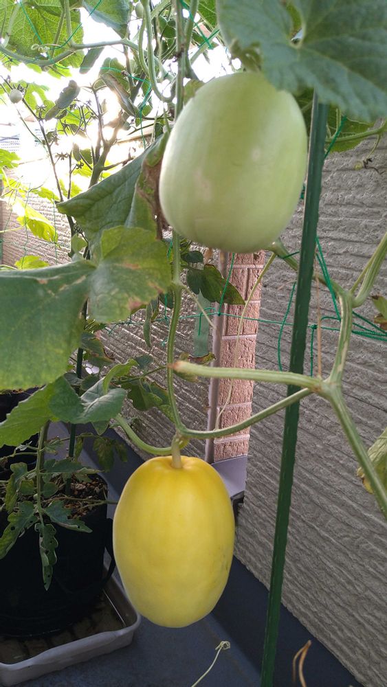 ベランダのマクワウリは全体的に黄色くなったら収穫かな😋