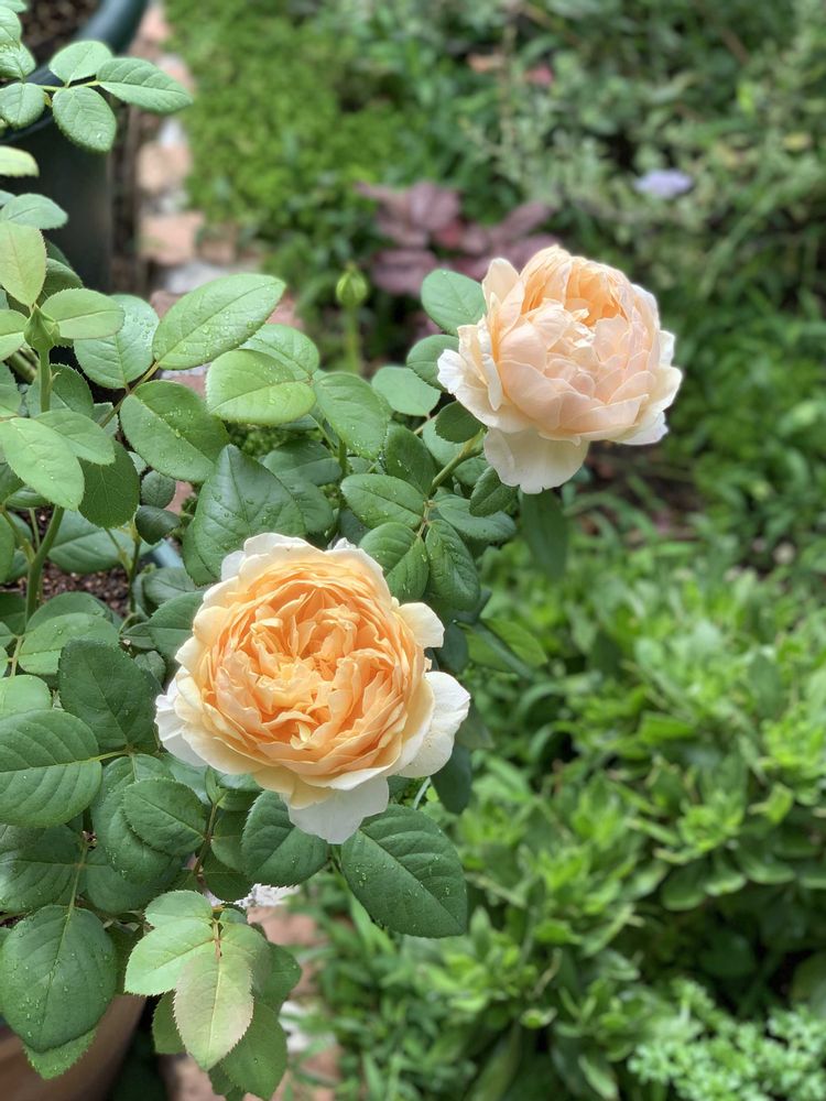 小っさい!可愛い!ERたちです。チャールズダーウィンさんは奥の花の方が先に咲いて、既に退色しはじめています。レッチフィールドエンジェルさんはとても華奢に咲いています。秋が楽しみです。