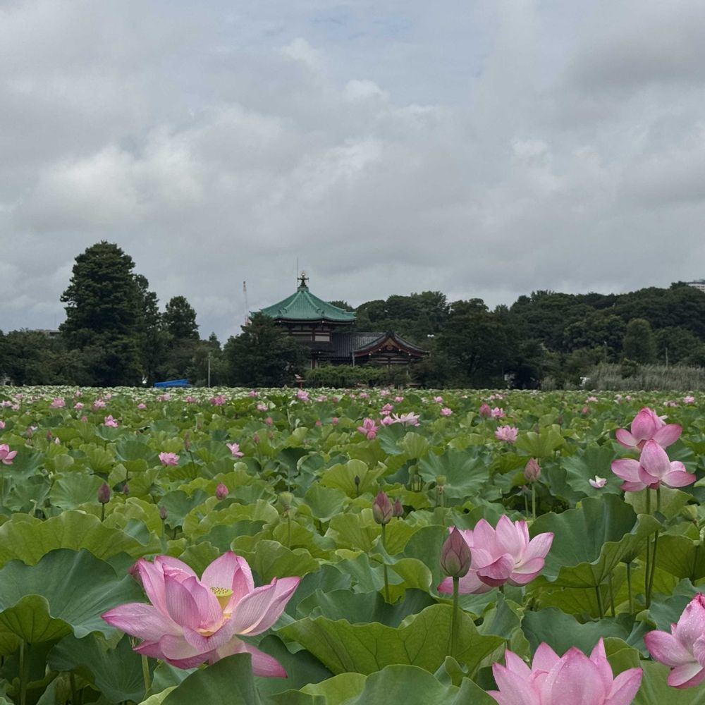 「蓮見デッキ」という、パーゴラにたくさんの風鈴を吊るしたウッドデッキが池に張り出していて朝から映えを目指す人たちでいっぱいでした。