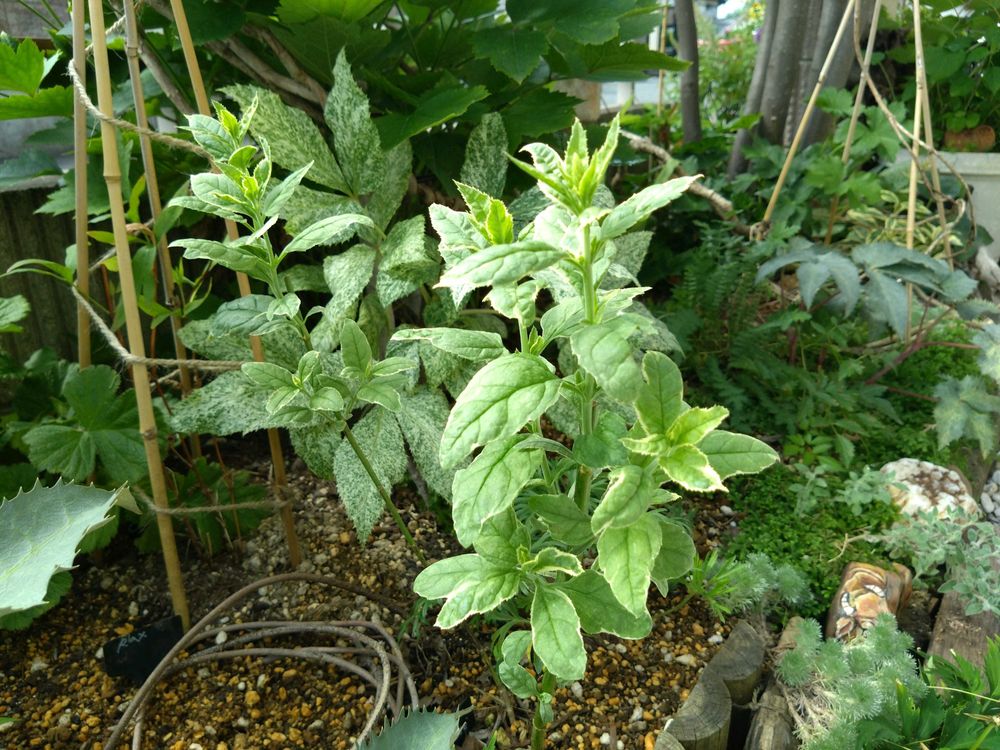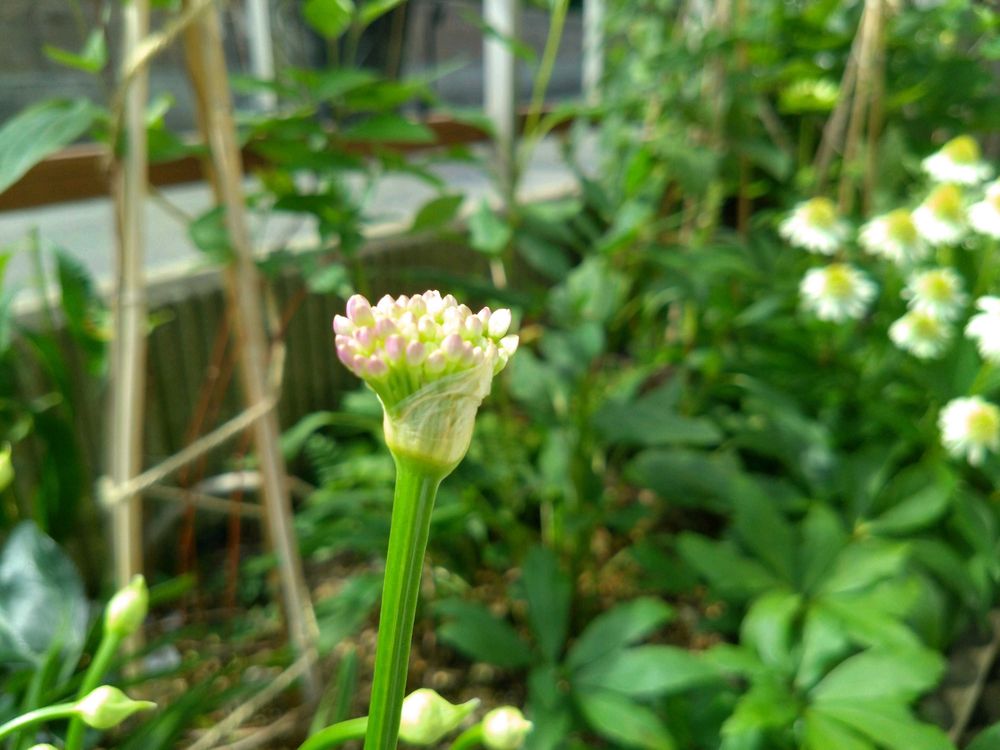 去年よりかなり背高になったので、先週末に花壇の後方へお引越ししました。