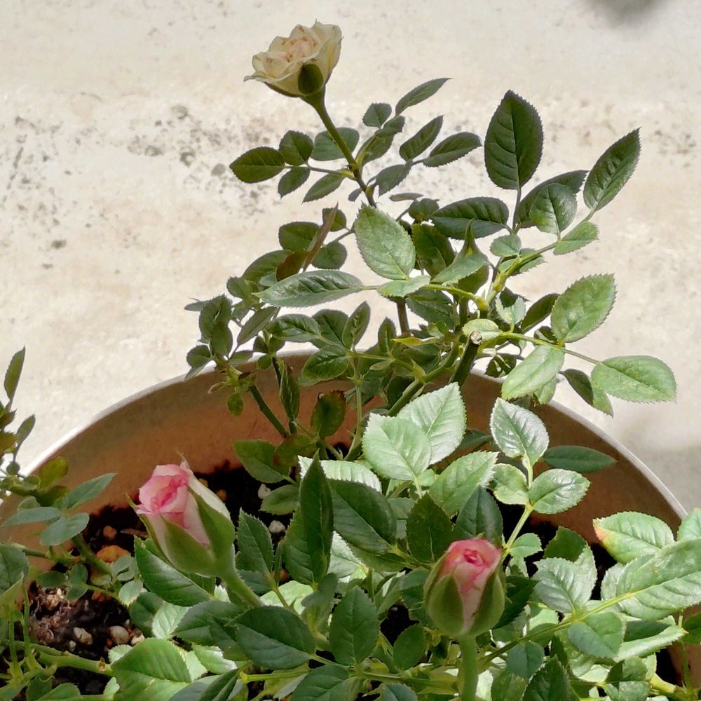 鉢植えのミニバラ カルーセルコルダーナが再び咲き始めてくれました🌹今年お迎えしてたミニバラでなかなか新しい蕾が見えませんでした