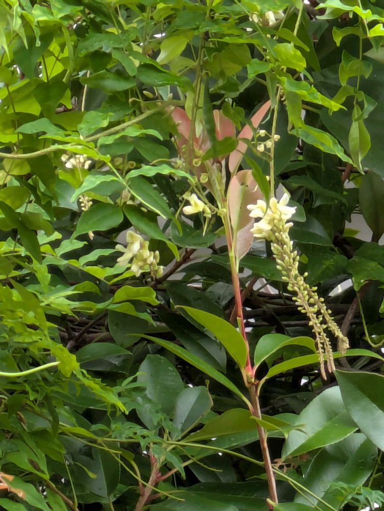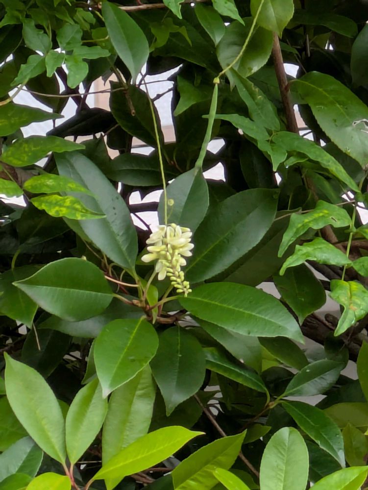 見上げるほどに高い場所には白い花、お名前調べたけどわかりません🤔