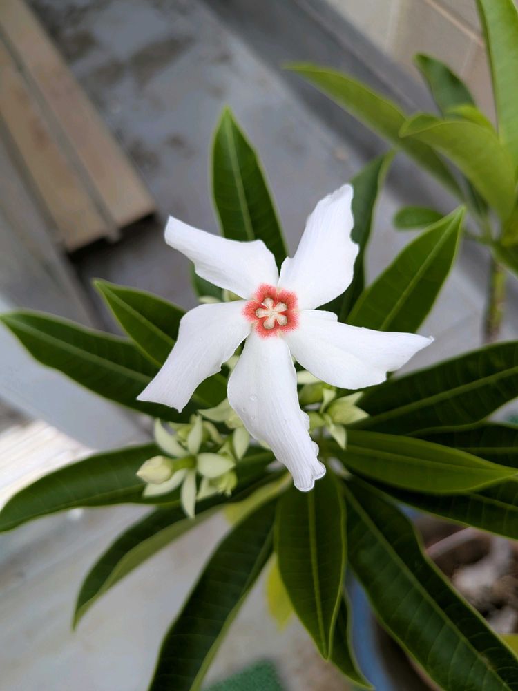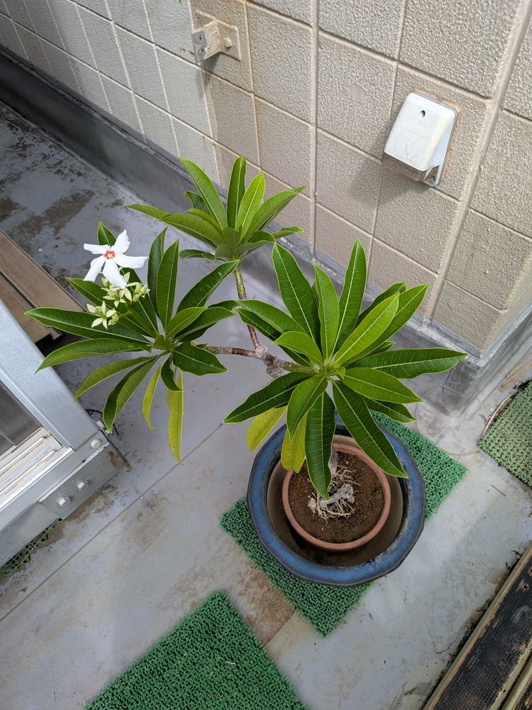 2年前に沖縄から穂木と台木を頼み接ぎ木したオキナワキョウチクトウ(ミフクラギ)が咲き始めました。本土のキョウチクトウに比べて葉に幅があり丸く花が大きく微かな香りがあり高木になり開花期が長く花後にゴルフボール大の実がなります。そして有毒植物で樹液が目に入ると腫れる事からウチナーグチではミフクラギ、ミーフッカギー、ミーフックヮーなどと呼ばれているそうです。そして沖縄県名護市東江にあるミフクラギは樹高11m、幹周3m以上あり推定樹齢200年のがありやはり琉球王国時代からあった植物なのでしょうね。ちなみにまだたくさんの蕾があるのでこれから咲くと思います!