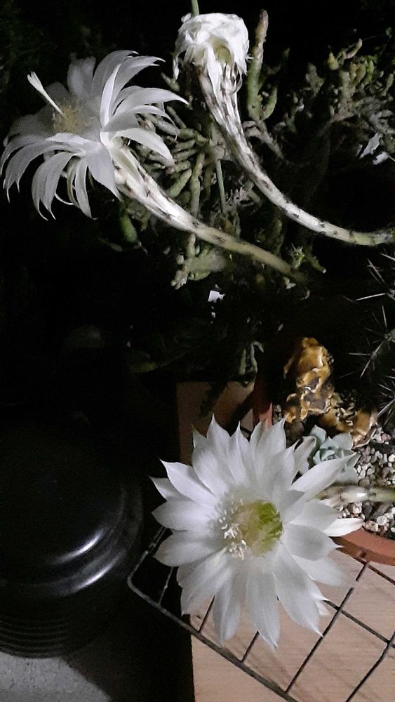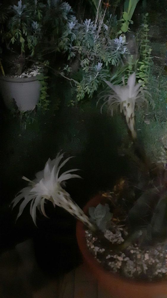 夜に咲くサボテン🌵の花、妖艶な感じお昼にみた時は、清楚な感じさえしたのに、二面性あり?