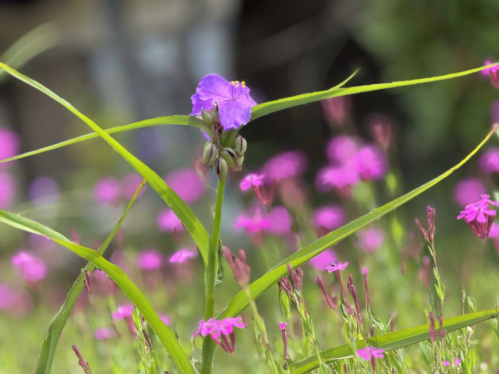 このツユクサだけは、一輪だけ、虫取りナデシコと一緒に。
