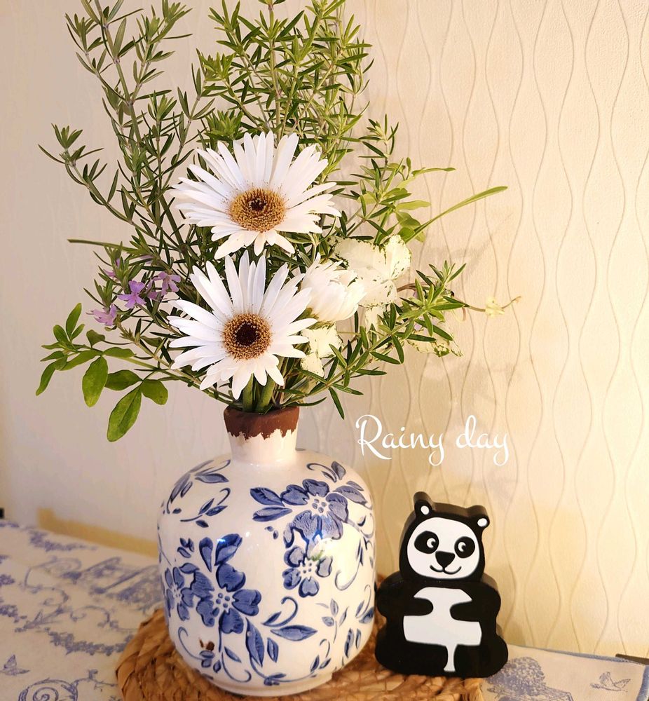 不安定な天気の中、力強く咲いてくれた真っ白なガルビネアを飾ってみました😊涼しげで可愛いです☘️