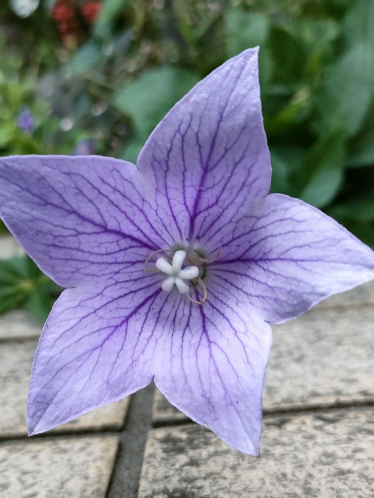 3️⃣陽射しを求めて、匍匐するキキョウに花が咲きました💜