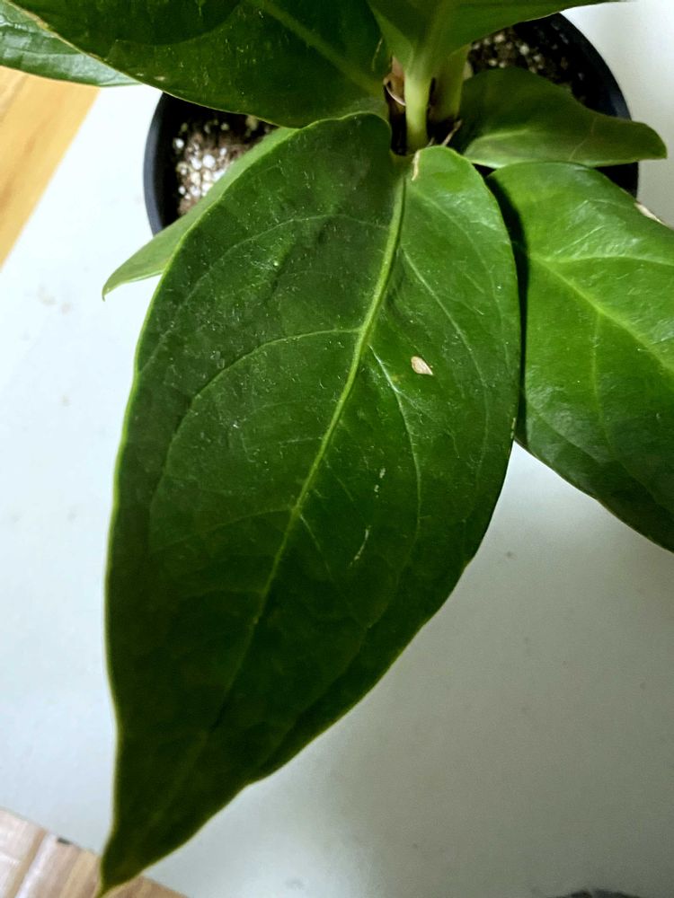 2025.8月に某サイトで購入した【アロカシア チャイ】の 突然変異?なんだろう 購入時、元々有った葉を(1枚目の葉)として、 下から新たな葉が出てきてる状態で到着しました(2枚目の葉) こちらに来て初めて出てきた葉に異変が。。 育て始めて出てきた初めての3枚目、4枚目 (途中から、斑1、斑2、、と続きます) どこまでこの謎の斑入葉が続くのか、 いや止まるのか……記録していきます