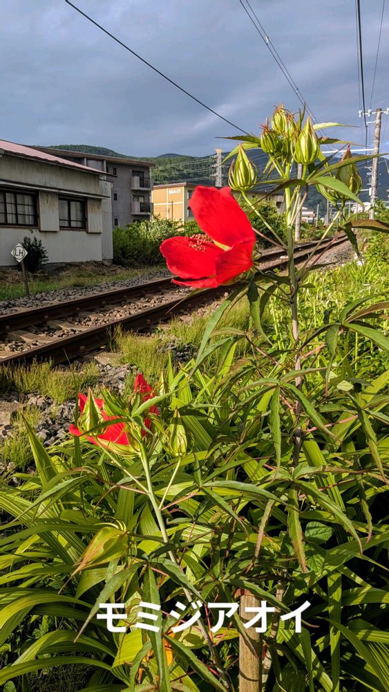 モミジアオイ赤がいいですね小田急線が思い浮かびます