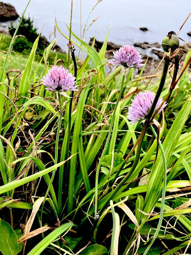 道端に咲いてるアサツキは見ますが断崖絶壁にも自生するのですネ😮