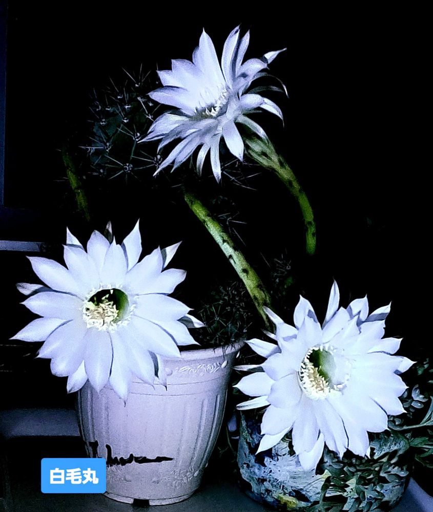 白毛丸(短毛丸)🌵2株、3ついっぺんに咲きました🤍🤍🤍🌃