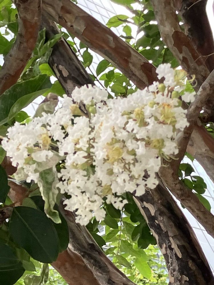 近所の街路樹には、白いサルスベリ🤍が今、旬を迎えています♪