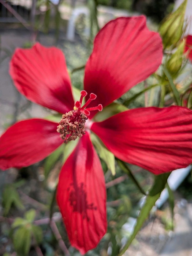 我が家のモミジアオイはまだ蕾です。一日花ですが、鮮やかな紅花は夏には欠かせない花ですね😊