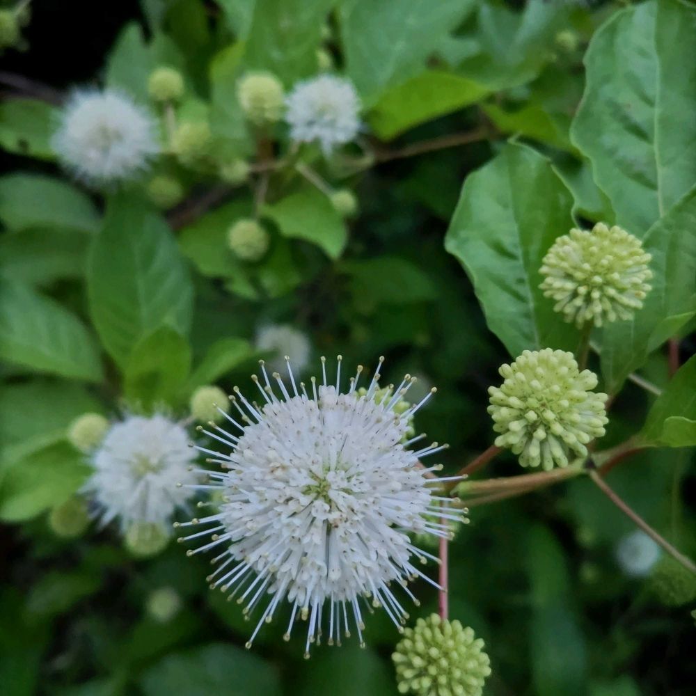 シベが飛び出して花火の様に見える球状のお花で珍しく、友達や知り合いが挿し木様に枝をお持ち帰りしています🌿