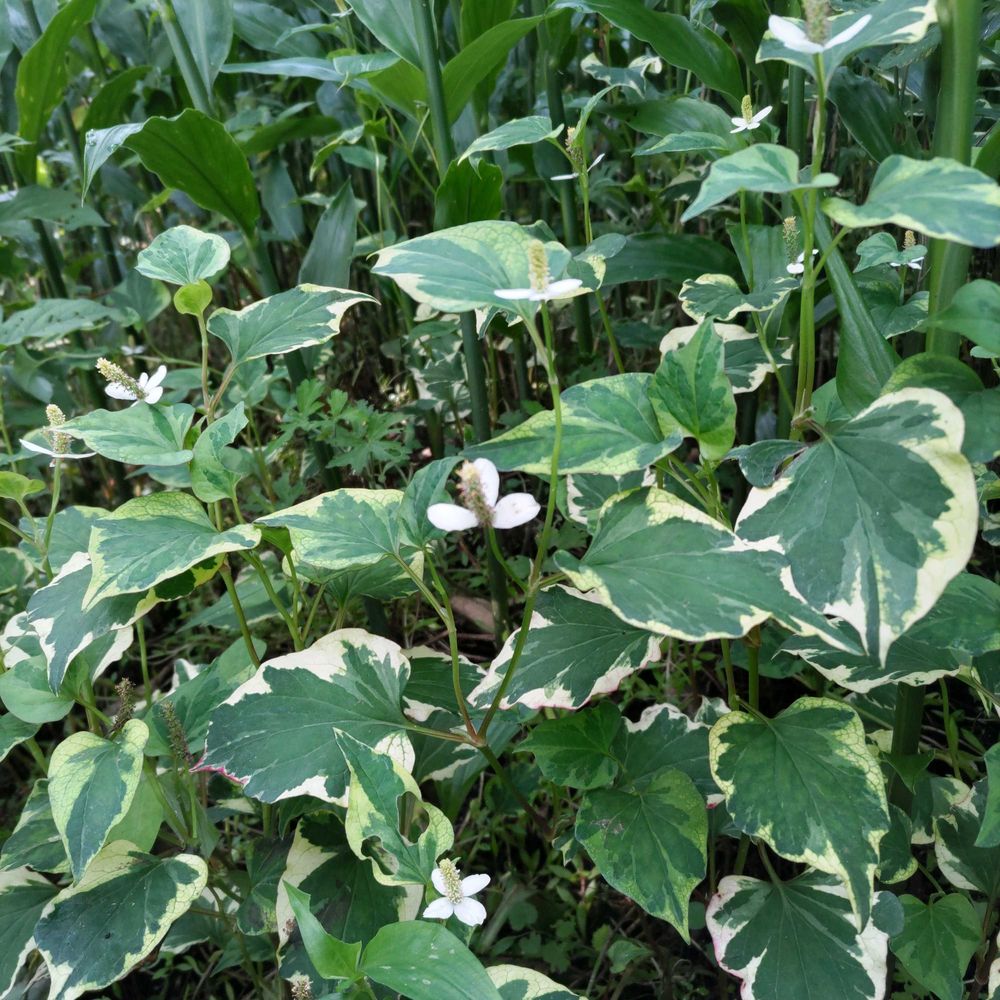 以前は赤も入っていたりと鮮やかな五色だったのですが、日陰のせいかただの斑入り葉状態😅