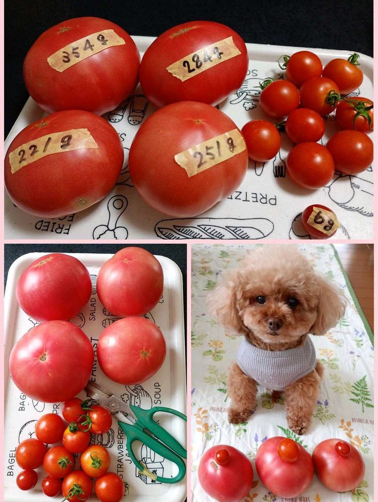 🍅は、例年より大きくて🤣💦つぃ、遊び心での🐕️📱写真。