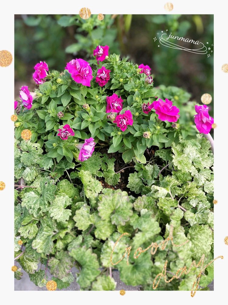 junmamaさんの斑入りグレコマ,八重咲きペチュニアギュギュ,寄せ植えの投稿画像
