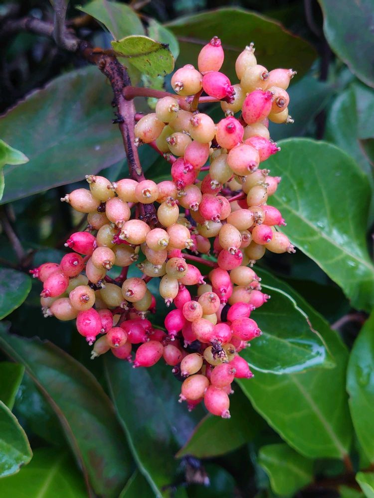 サンゴジユは真っ赤になっても綺麗だけど、今くらいの色付き始めが可愛いです😍