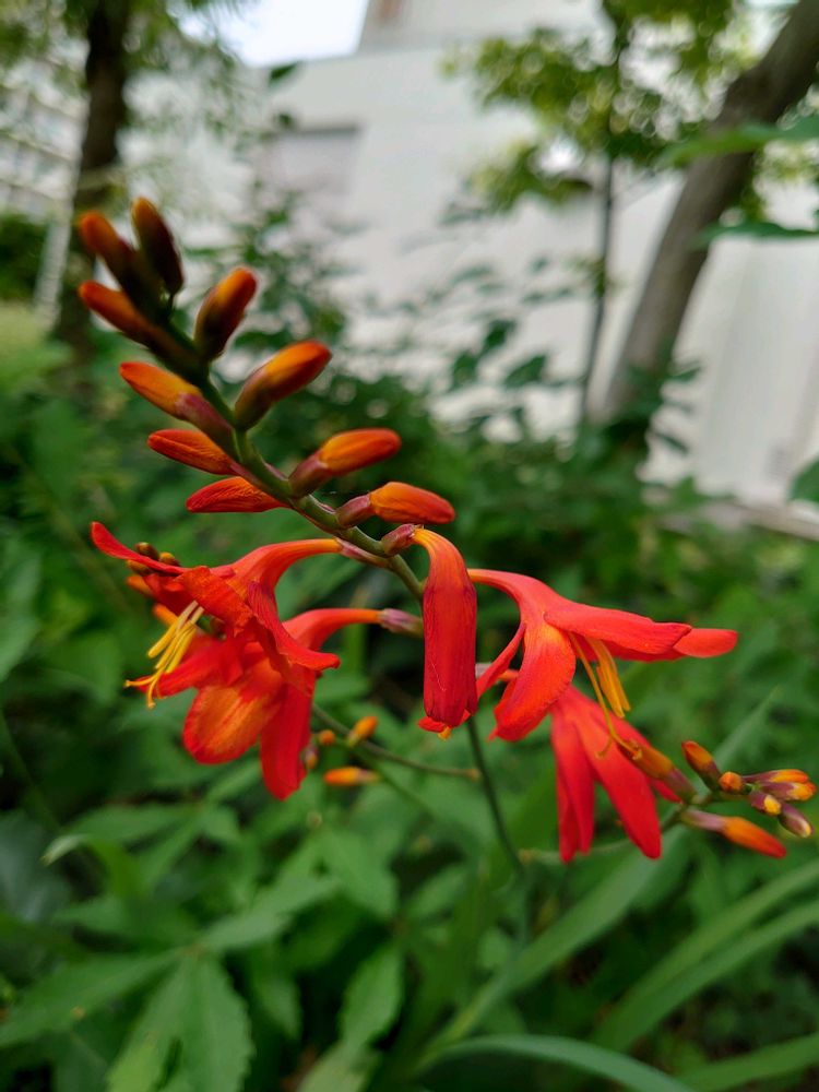 4️⃣ヒメヒオウギズイセン🧡鮮やかな色が緑の中で涼しげに見えました🌿🧡😊