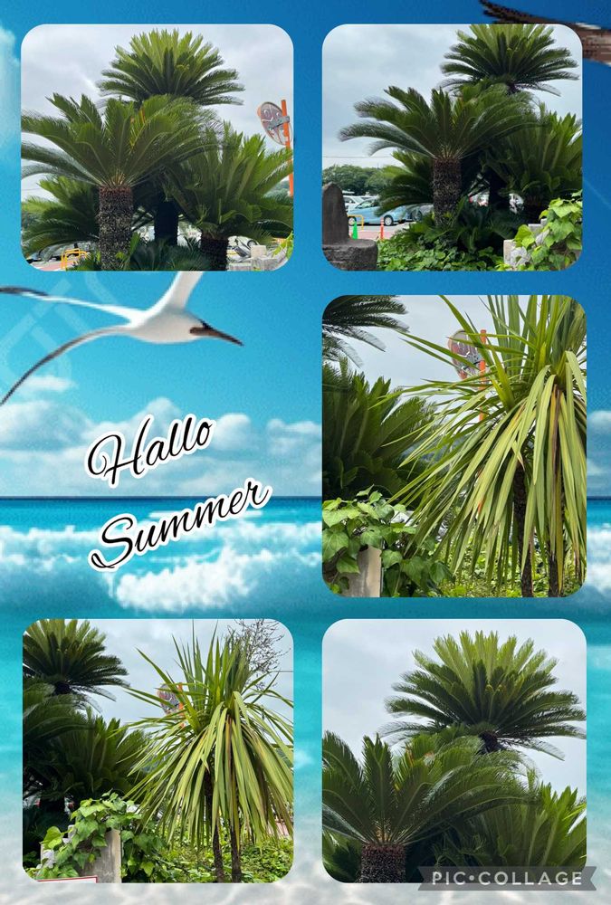 丸いベンチ…その中で目立って観葉植物がある…今年はとても大きくなっている……♡ソテツ ニオイシュロラン その他…