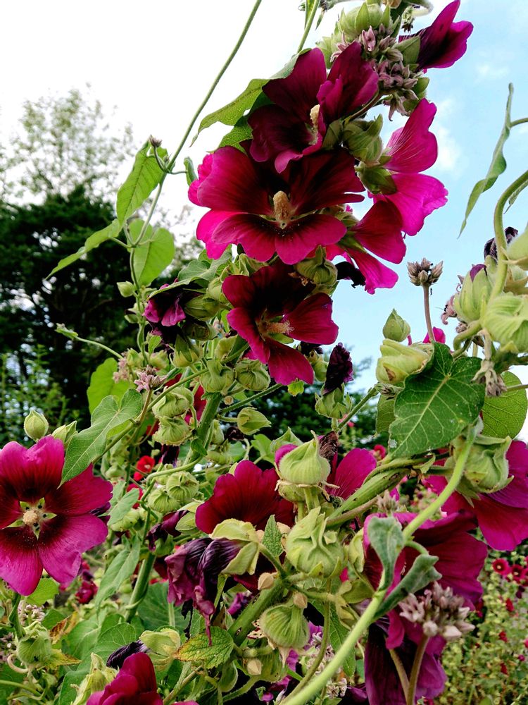 ヒマワリ,タチアオイ,八重咲きハマナスの投稿画像