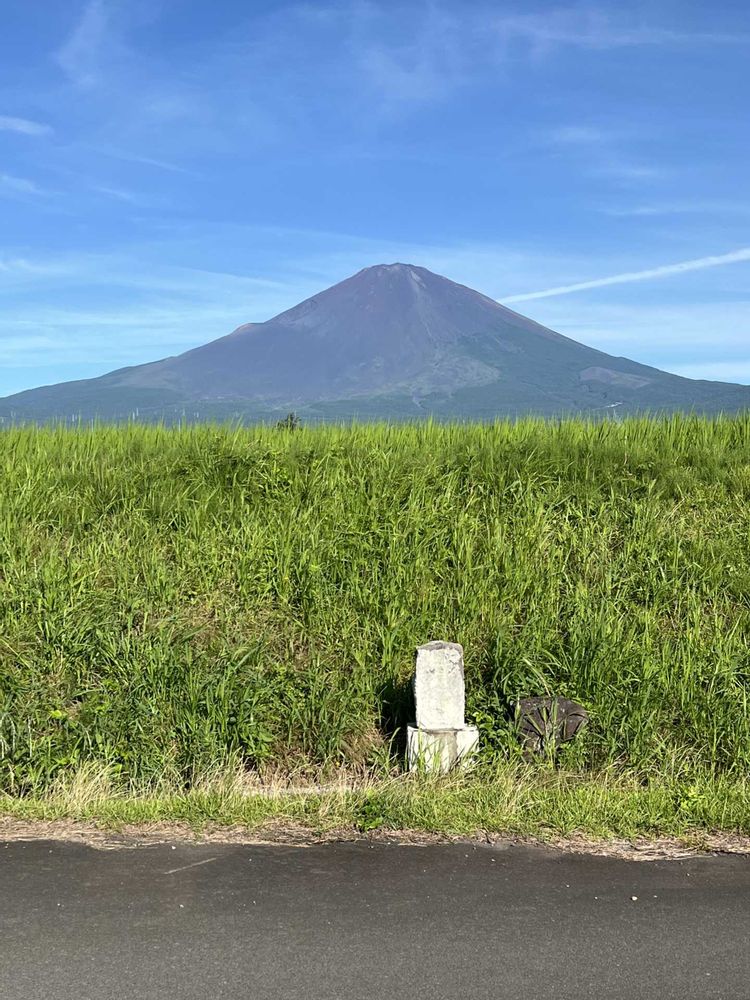今朝の富士山と青い車、道祖神,蜻蛉,キスゲ