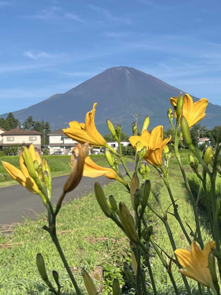 青空に映えて、梅雨明けの富士山はすっかり青い山になってます