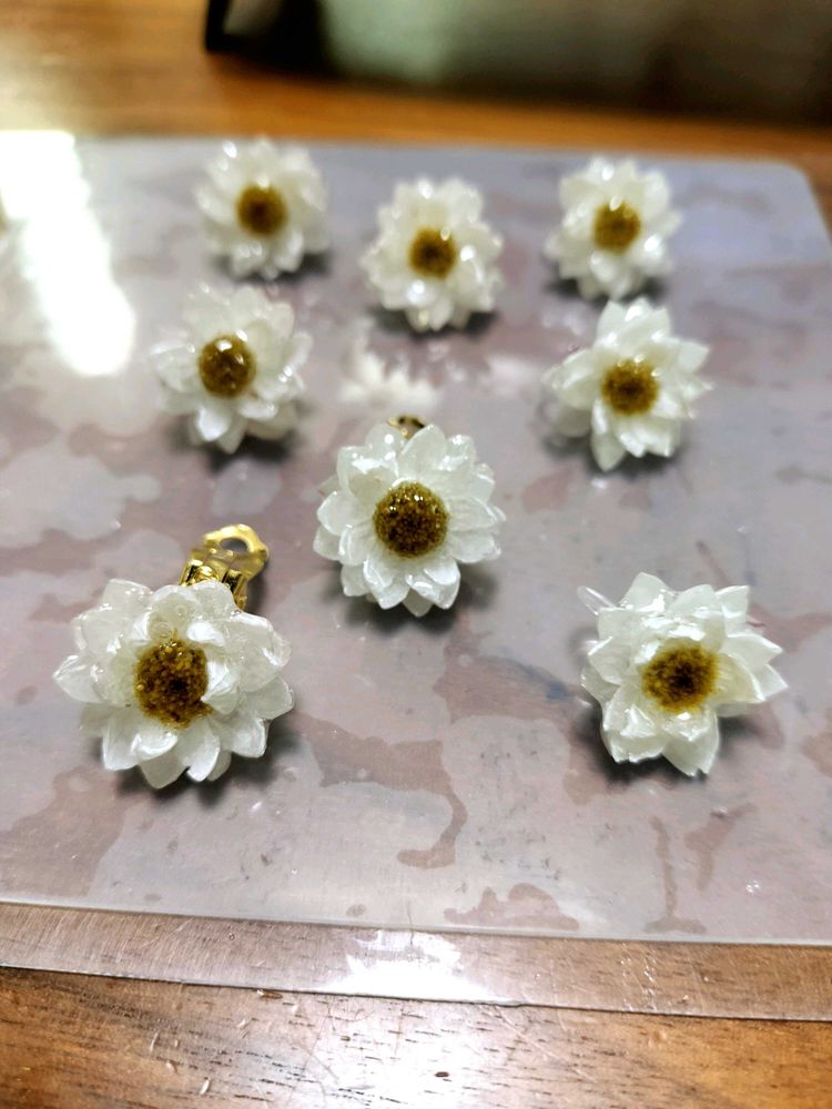 久しぶりにシリカゲルの中から花かんざしを掘り起こして、レジンで固めて…という作業をしました!