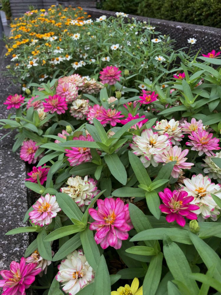 ジニアさんもたくさん咲いてステキですねー😊💓🌿💜💜🌿🩷🩷🩷🌸🌸🌸