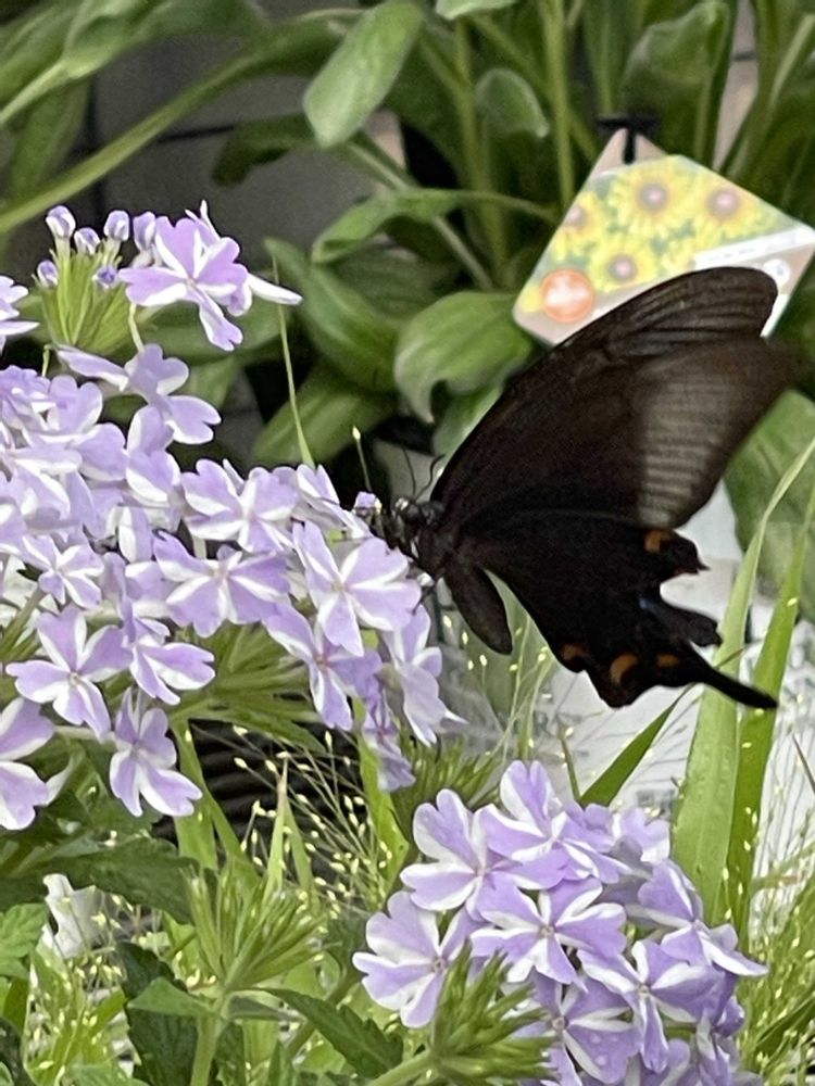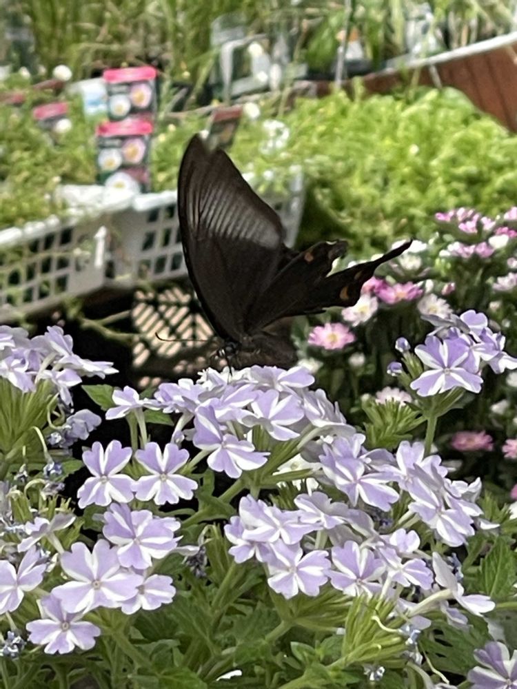 久しぶりに園芸店に行ったら、クロアゲハがご訪問でした♪🙇♂️🙏😊🙆♂️