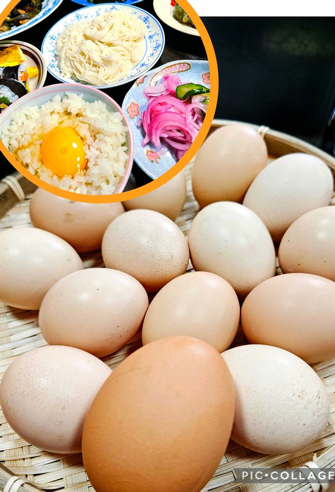 手前の卵は普通の卵ですヨ😅 大きさを比べる為に普通のを…┐('~`;)┌…