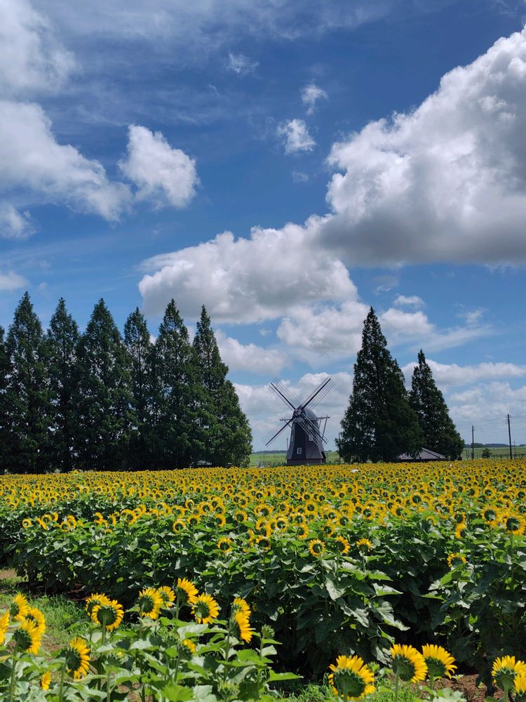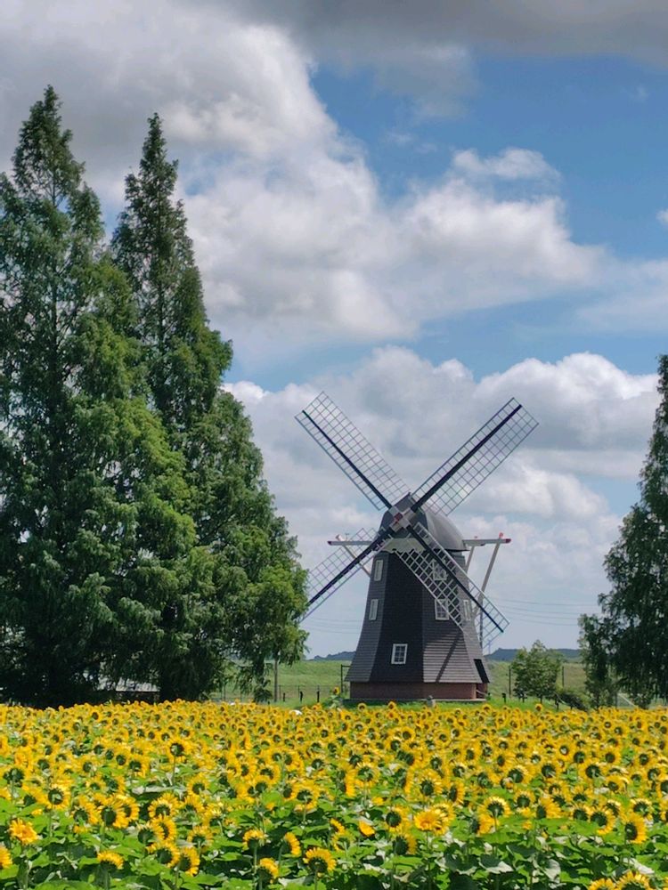 ひまわりも青空も風車もどれも素敵💛💙💛