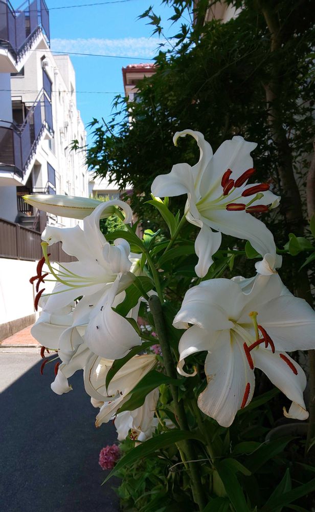 視界が歪むほどの暑さの中でも、清々しい白さの百合が、きりりと咲いてるのいいですよね〜😍💕