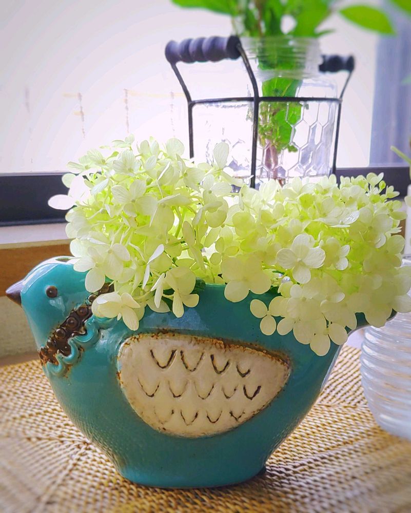 Morning〜🕊️ 蚊取り線香入れも花器として👍(⁎˃ᴗ˂⁎)♡💚