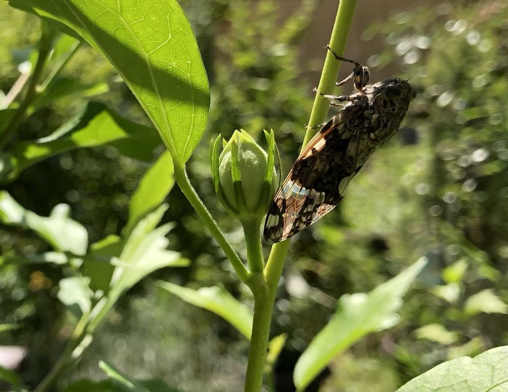 朝、お庭の水撒きをしていたら、ムクゲの枝?幹?にセミさん発見ฅ(º ロ º ฅ)!!