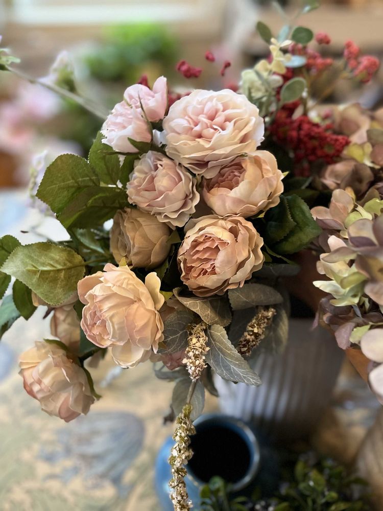 メインは🥀で足元には紫陽花を…アクセントに赤ピンクの小さな実と柔らかい色合いのラベンダーも少し🤏