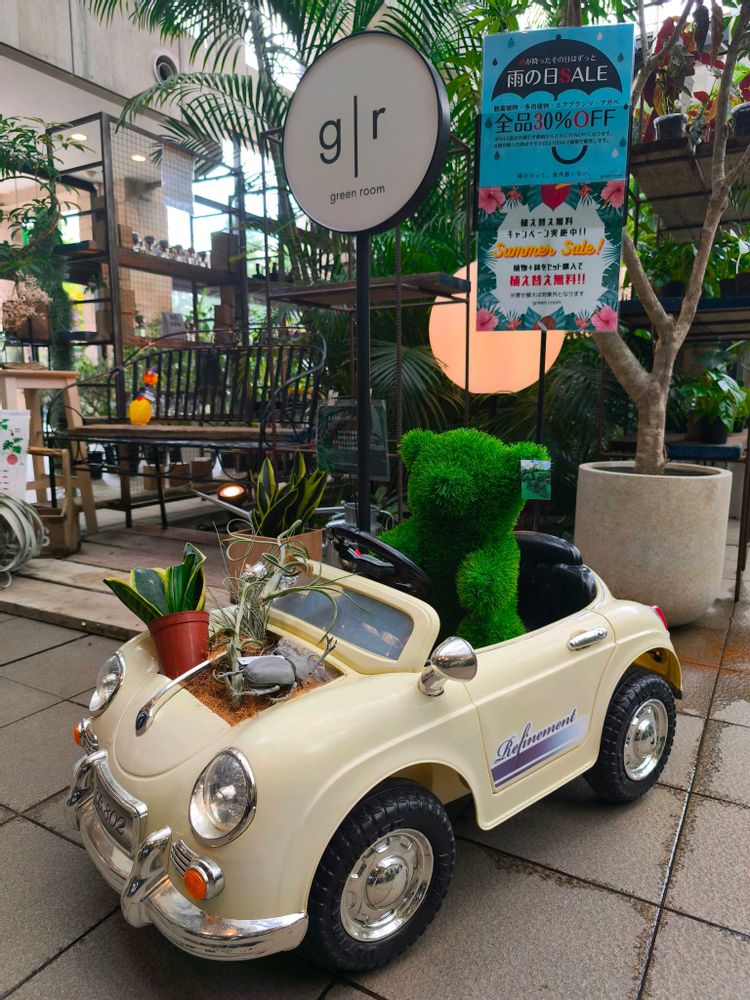 ④ガーデンショップで見かけた素敵な飾り ※雨の日セールのPOPも見えます!