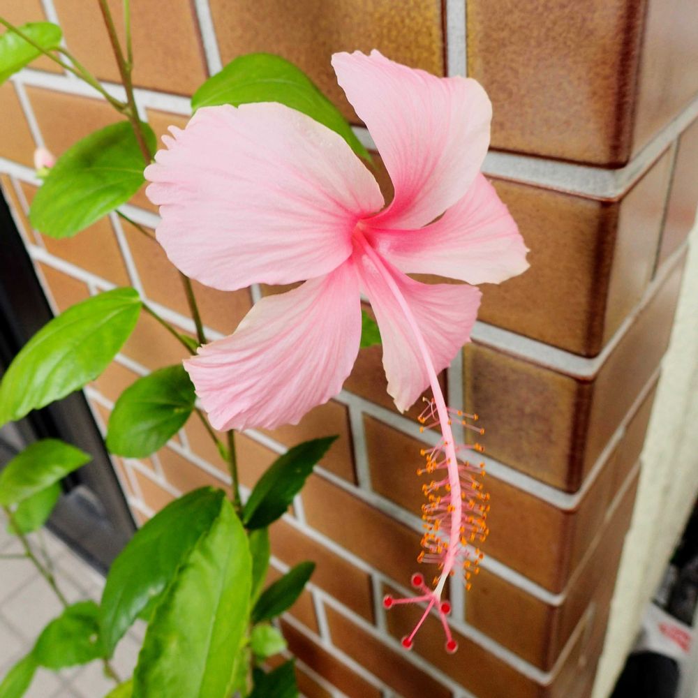五枚目は、ハイビスカス バタフライピンク、これは原種系で暑さに強く、猛暑の中元気に咲いています😊その代わり寒さにやや弱いので、冬は早めに室内で保護しないと枯れることがあります💦