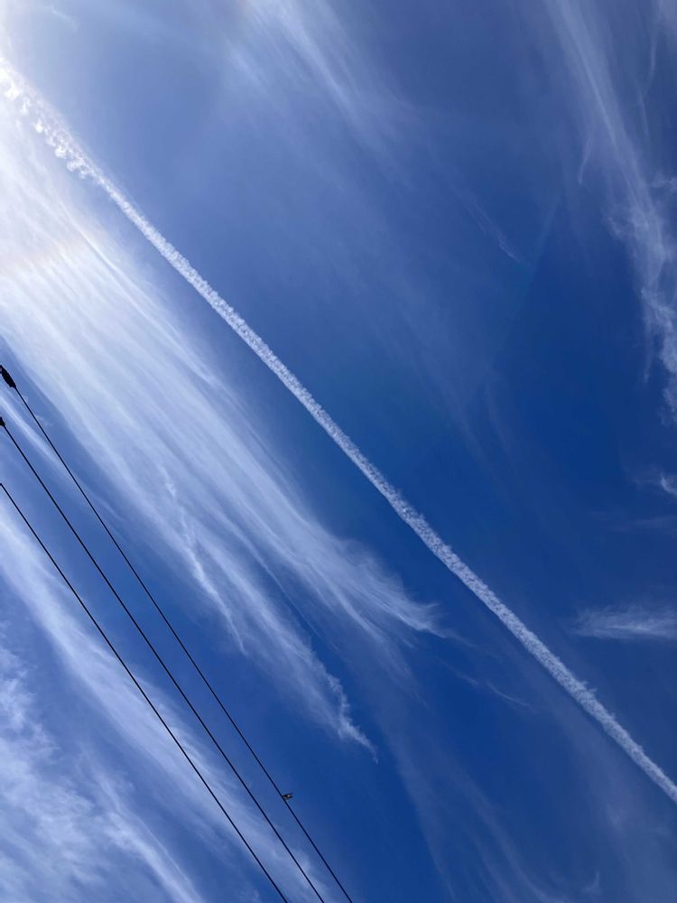 つるバラの羽衣、バラの芳純、アイスバーグ🌹風が吹いて暑さは和らげた🌿青空に飛行機雲☀️