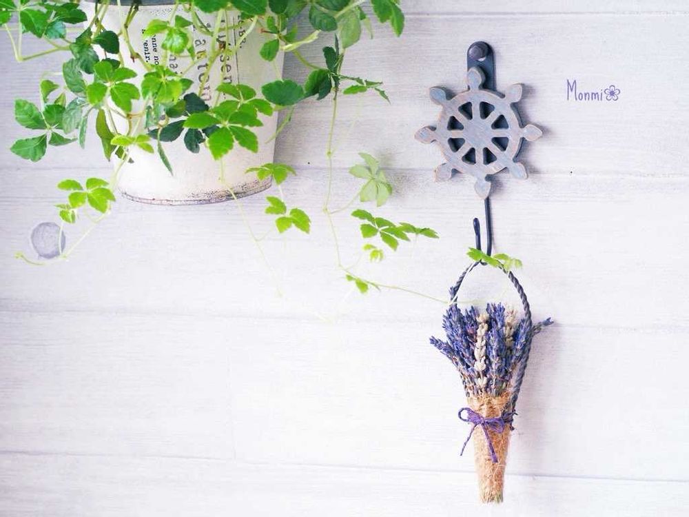 YouTubeを参考にラベンダーと麻紐で編んでみました