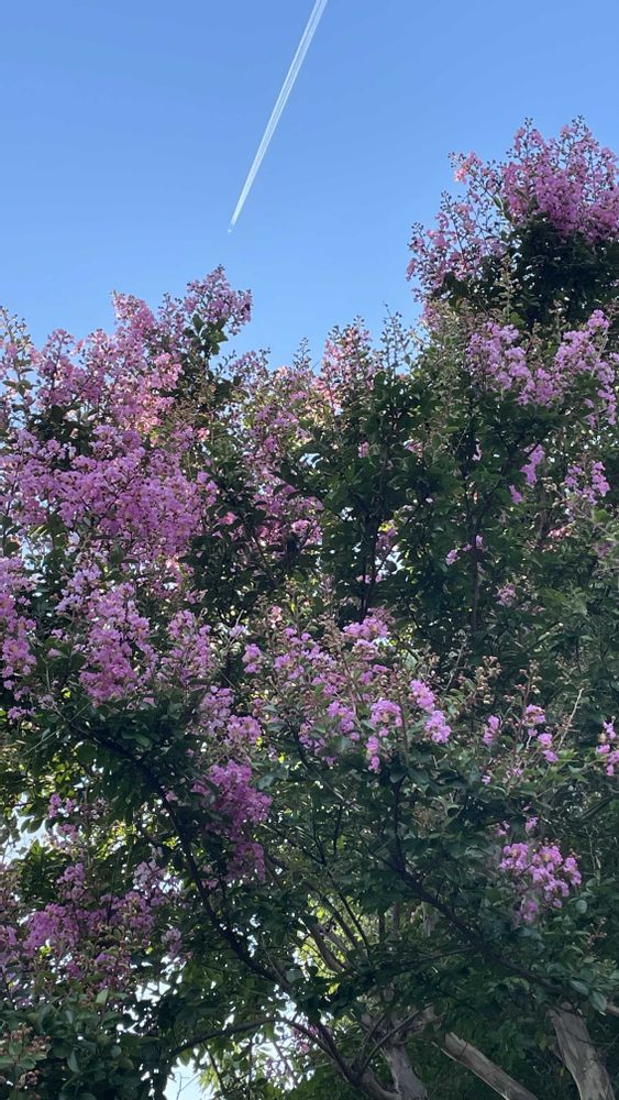ご主人も青空と飛行機雲とサルスベリに心を動かされたのですね📱
