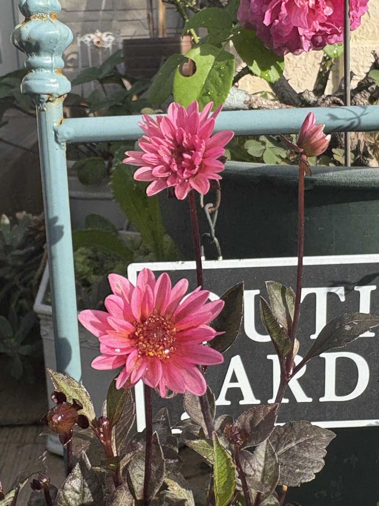 銅葉ダリア も猛暑の中、可愛く咲いてる❣️