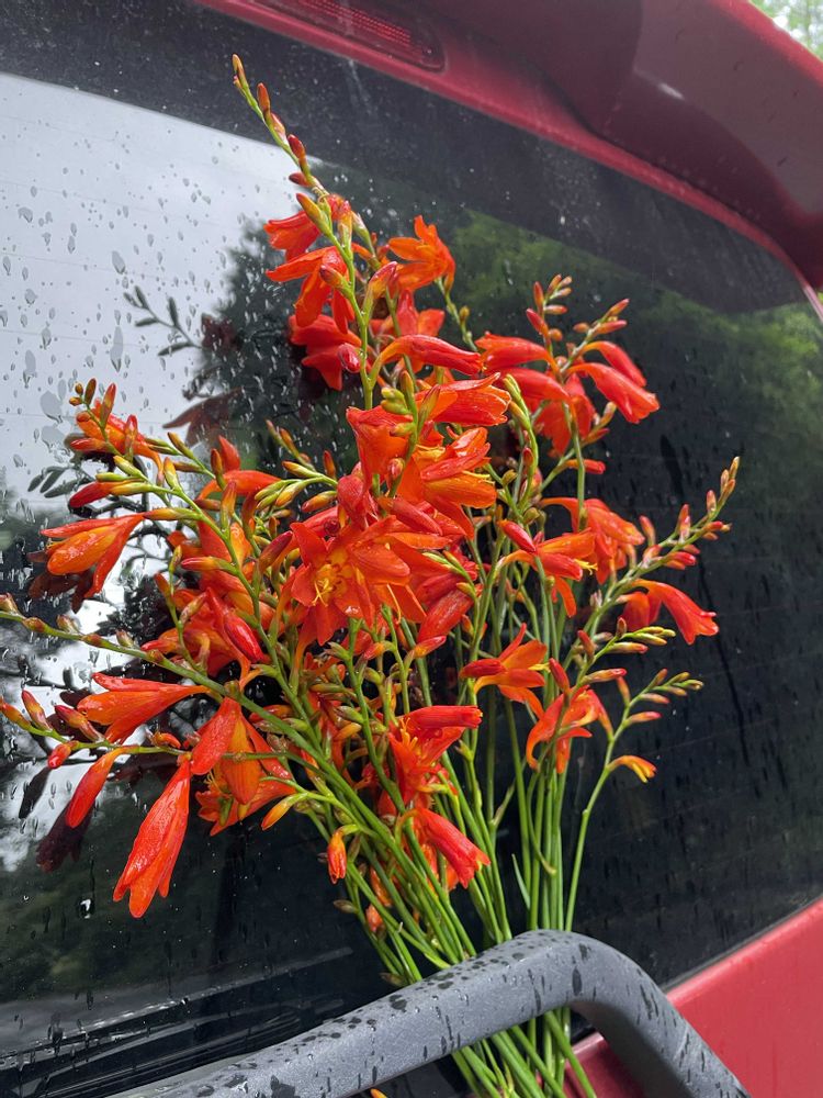 先日実家で群生していたので✂️して撮る際に小雨が降り出したのでワイパーに手伝ってもらいました😄